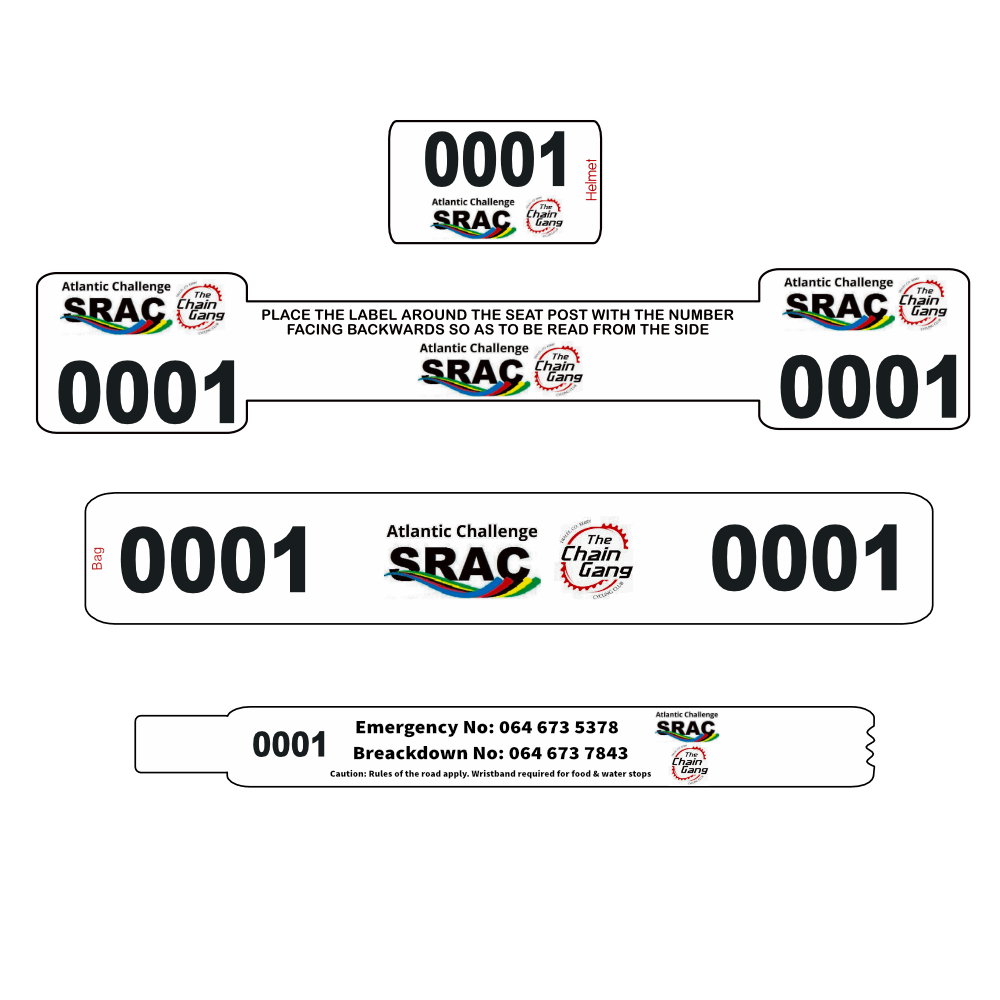 - a numbered bike seatpost sticker (300mm x 50mm),