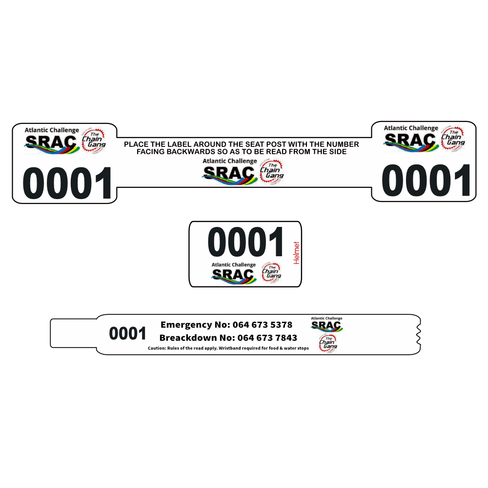 • a numbered bike seat post sticker (300mm x 50mm) and